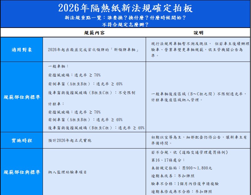 最近你是否也注意到了?關於「2026年隔熱紙新法規」的消息,已在新聞媒體、車友論壇與社群平台間引爆討論。